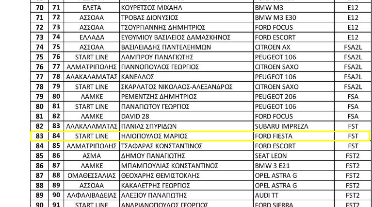 Ο αγώνας συγκέντρωσε για άλλη μια χρονιά τριψήφιο αριθμό συμμετοχών, καθώς 103 οδηγοί θα ανεβούν, τόσο το Σάββατο στις χρονομετρημένες δοκιμές, όσο και την Κυριακή στον αγώνα, στη φημισμένη διαδρομή μήκους 3100 μέτρων.