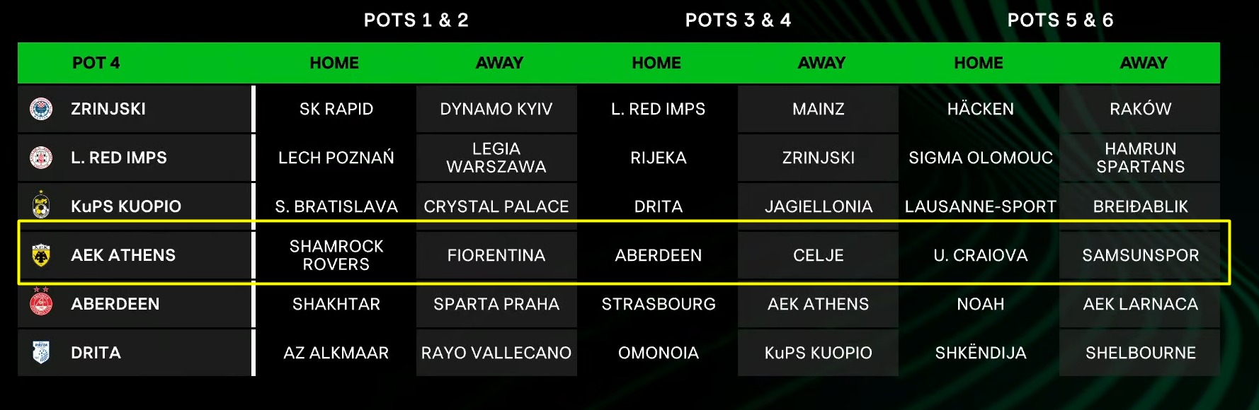 Αυτοί είναι οι 6 αντίπαλοι ΑΕΚ στη League Phase Conference League - Με ποιους παίζει εντός, με ποιους εκτός