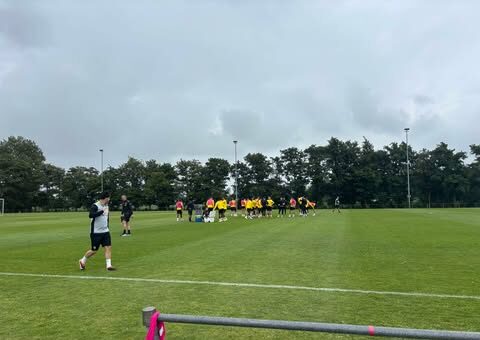Βροχή έπιασε κατά τη διάρκεια της σημερινής προπόνησης (24/06) της ΑΕΚ στο Μπουργκ Χάαμσταντ.