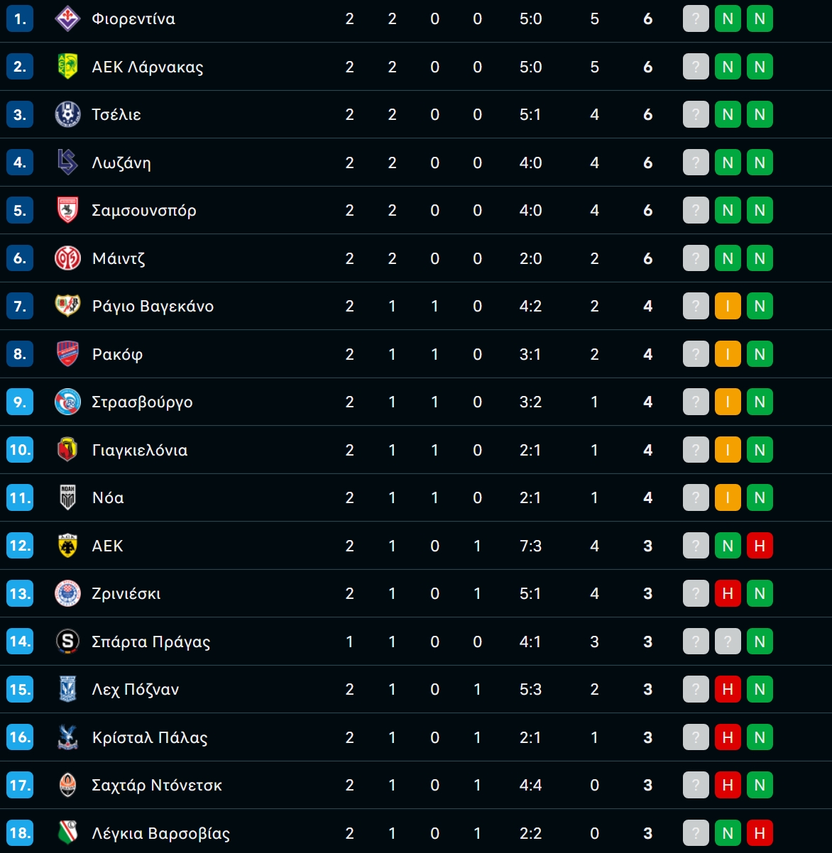 Conference League: Η βαθμολογία της League Phase μετά την ολοκλήρωση της 2ης αγωνιστικής - Σε ποια θέση βρίσκεται η ΑΕΚ!