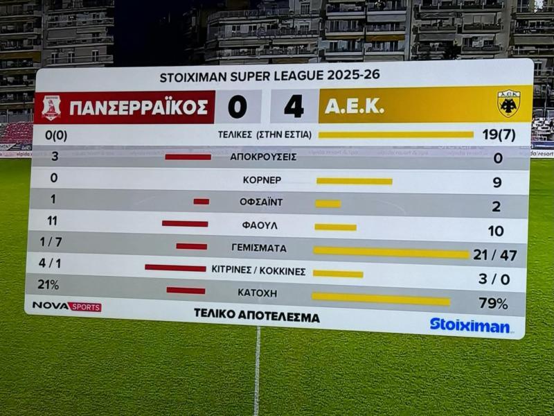 H AEK «έπνιξε» τον Πανσερραϊκό εκτός έδρας, με την Ένωση να παίρνει τη νίκη με σκορ 4-0, ενώ οι Σερραίοι τελείωσαν το ματς χωρίς καμία τελική!