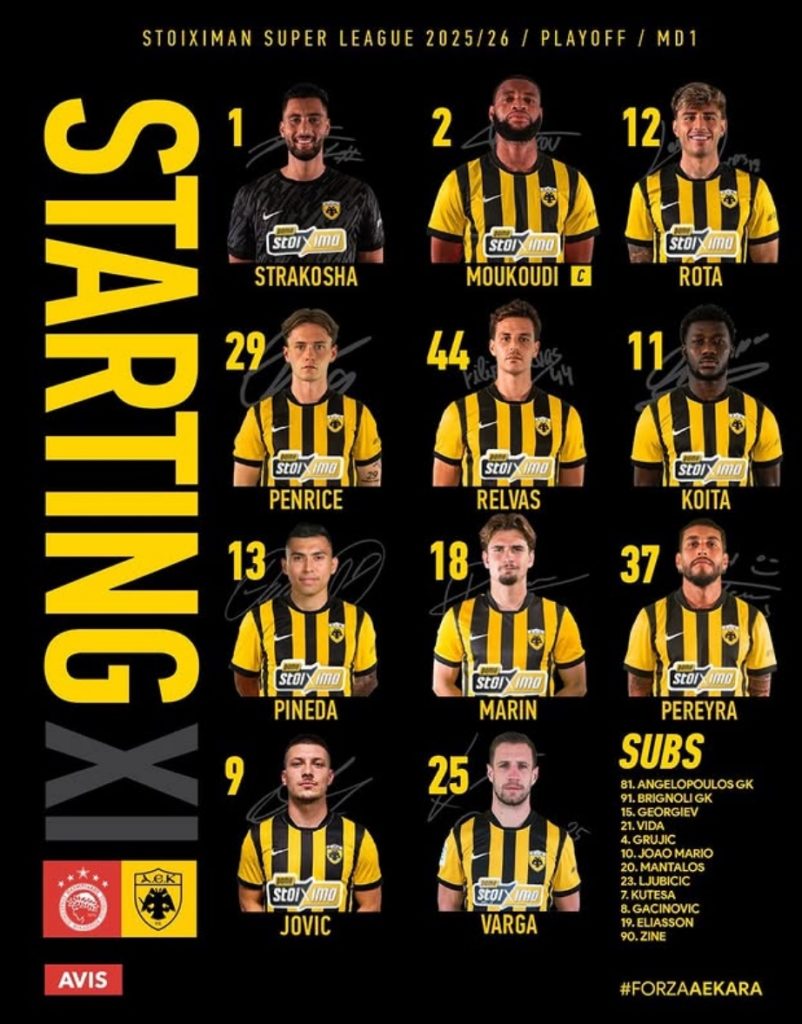 Η 11αδα της ΑΕΚ με Ολυμπιακό