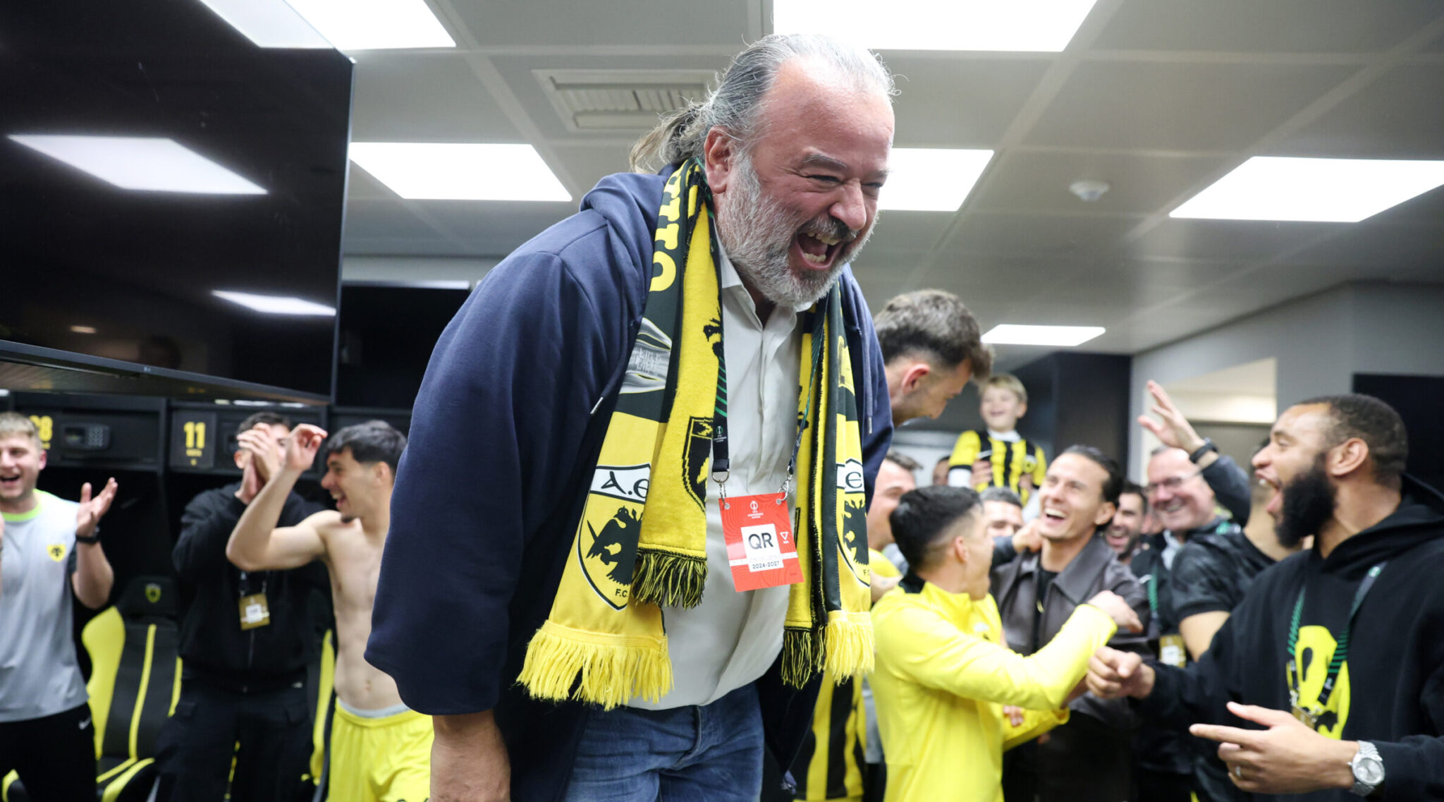 Ο Μάριος Ηλιόπουλος έπλεε σε πελάγη ευτυχίας μετά την πρόκριση της ΑΕΚ στους «16» του Conference League, όπου θα παίξει με μία εκ των Ντρία, Τσέλιε, Άλκμααρ και Νόα.