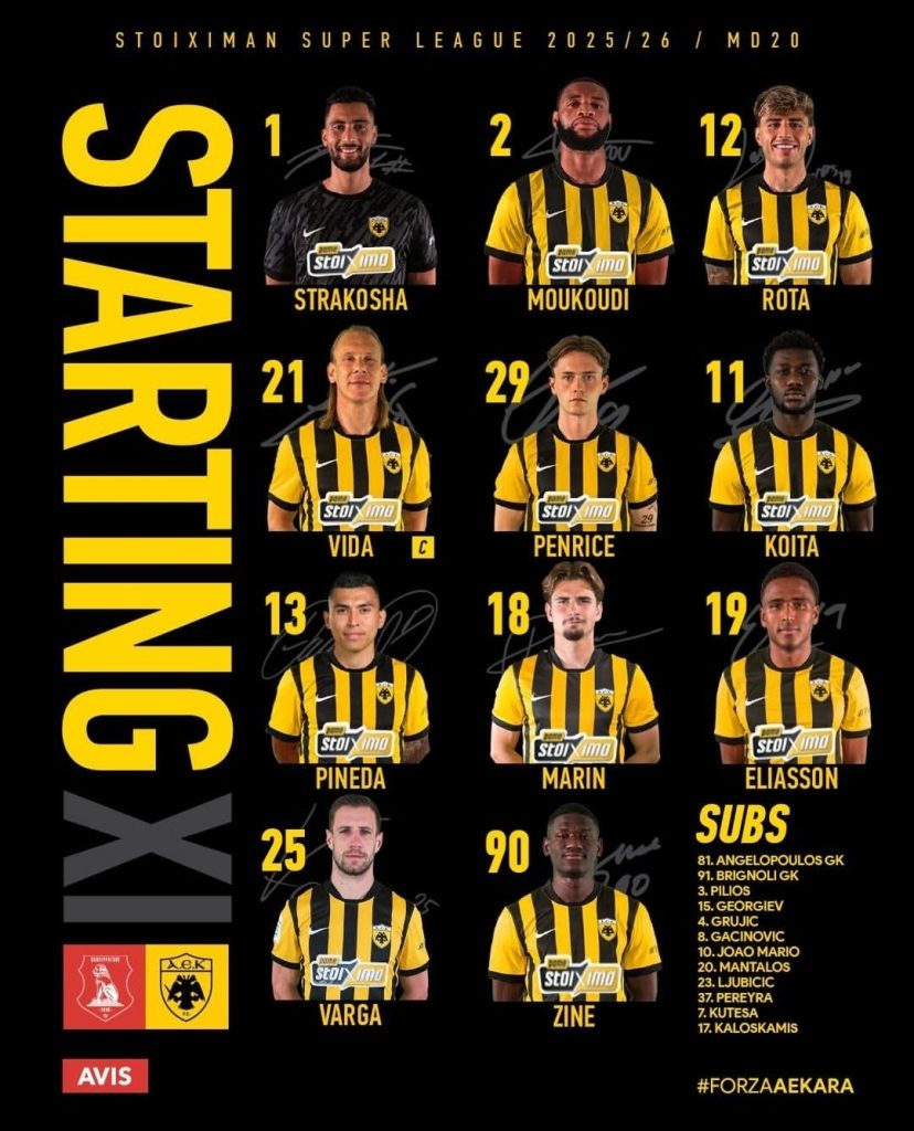 Η 11αδα της ΑΕΚ με Πανσερραϊκό