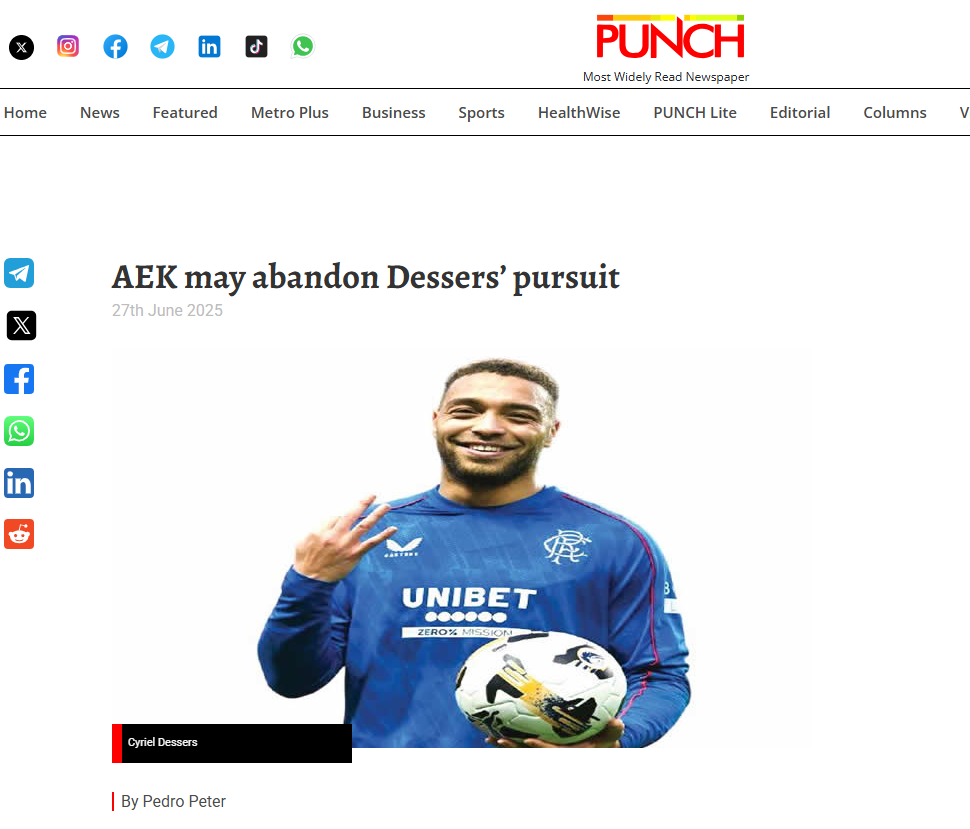 «Η ΑΕΚ ενδέχεται να εγκαταλείψει την προσπάθειά της για τον Νιγηριανό επιθετικό Σιρίλ Ντέσσερς, καθώς οι οικονομικές διαπραγματεύσεις με τη σκωτσέζικη Ρέιντζερς καθυστερούν, σύμφωνα με το PUNCH Sports Extra.