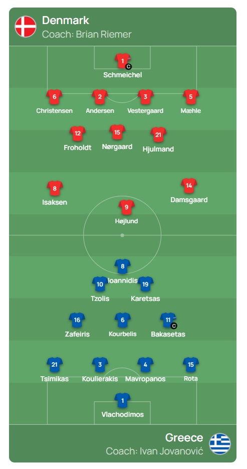 Η ενδεκάδα της Ελλάδας με Δανία!