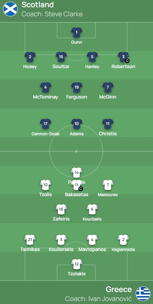Η ενδεκάδα της Ελλάδας με Σκωτία!
