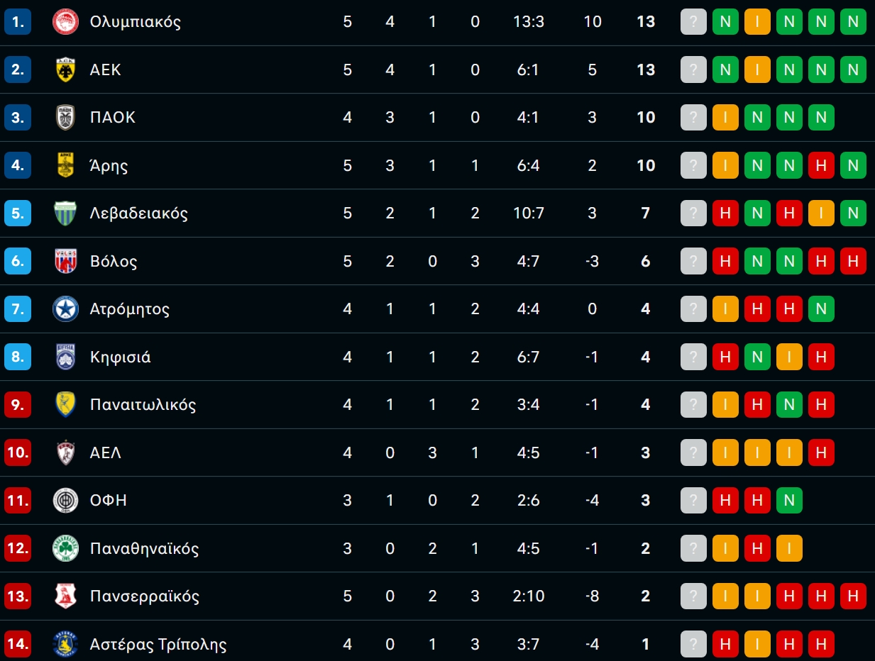 Δείτε πώς έχει διαμορφωθεί η βαθμολογία της Stoiximan Super League μετά τη νίκη της ΑΕΚ επί του Βόλου για την 5η αγωνιστική.