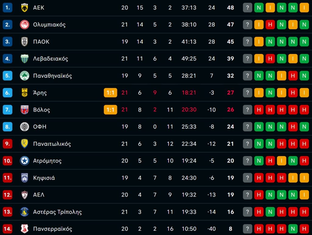 Η βαθμολογία της Stoiximan Super League μετά την γκέλα του Ολυμπιακού με Λεβαδειακό!