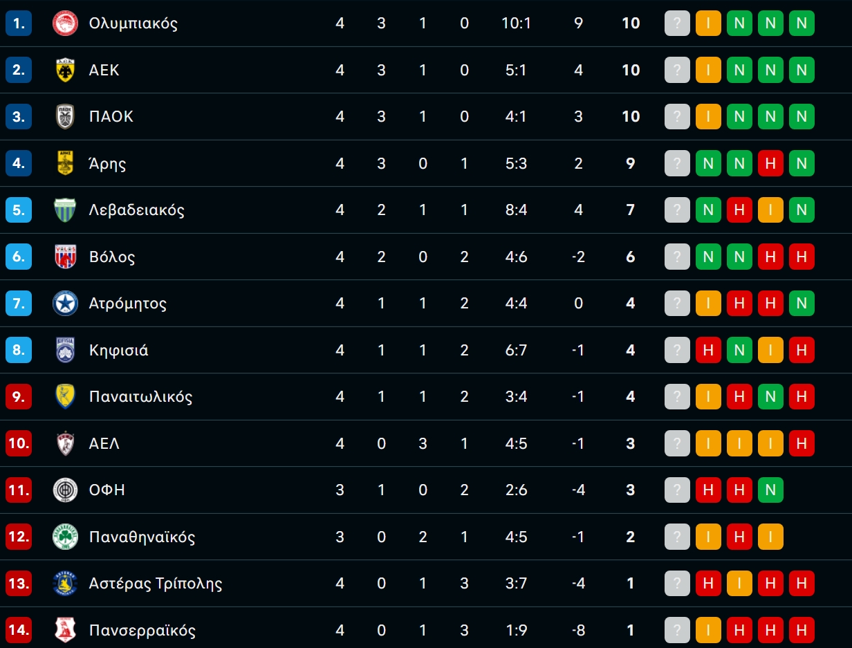 Διαβάστε πώς διαμορφώθηκε η βαθμολογία της Stoiximan Super League μετά την ισοπαλία 1-1 στο ντέρμπι της Λεωφόρου μεταξύ Παναθηναϊκού και Ολυμπιακού και το τέλος της 4ης αγωνιστικής.