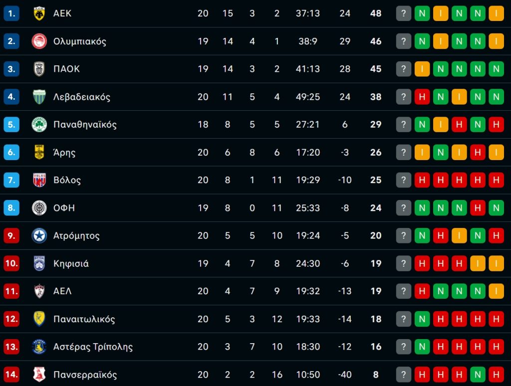 Η βαθμολογία της Stoiximan Super League μετά την ισοπαλία του ΠΑΟΚ επί του Άρη!