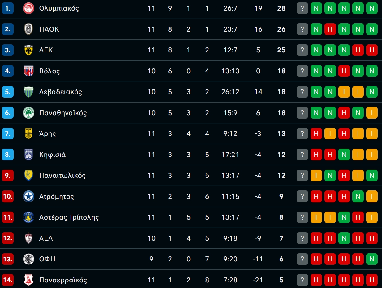 Η βαθμολογία της Stoiximan Super League μετά την νίκη της ΑΕΚ επί του Άρη!