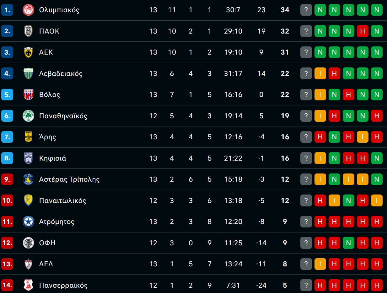 Η βαθμολογία της Stoiximan Super League μετά την νίκη της ΑΕΚ επί του Ατρομήτου με 4-1!