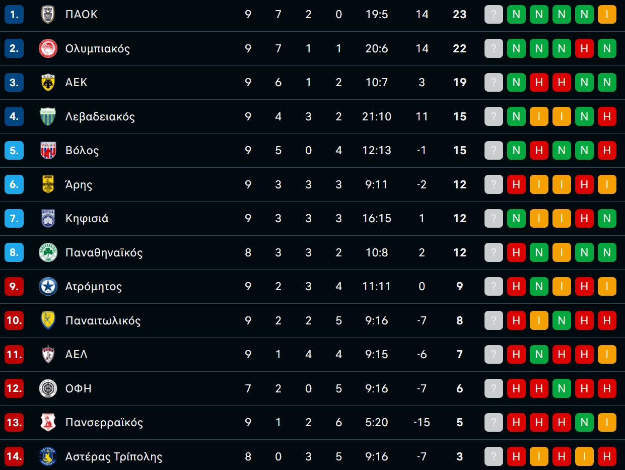Η βαθμολογία της Stoiximan Super League μετά την νίκη της ΑΕΚ επί του Παναιτωλικού με 1-0.