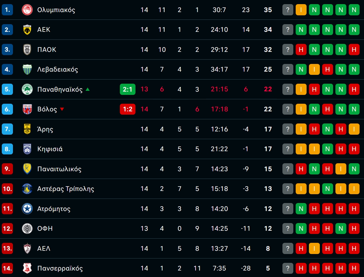 Η βαθμολογία της Stoiximan Super League μετά το Άρης-Ολυμπιακός!