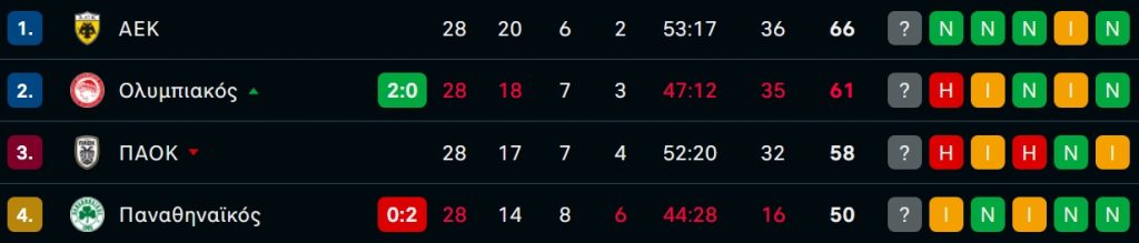 Η βαθμολογία των playoffs της Stoiximan Super League (2η αγωνιστική)