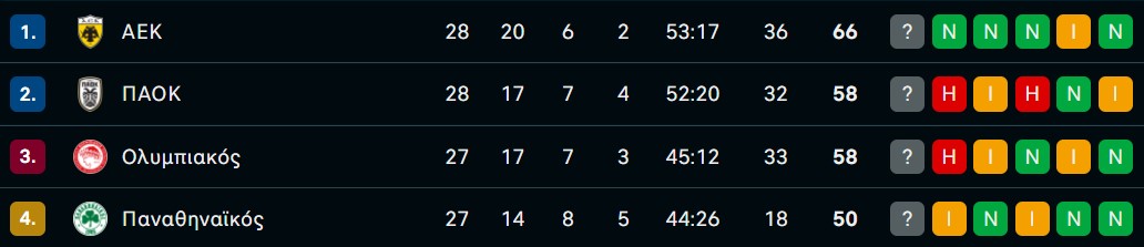 Η βαθμολογία των playoffs της Stoiximan Super League μετά τη νίκη της ΑΕΚ επί του ΠΑΟΚ με 3-0