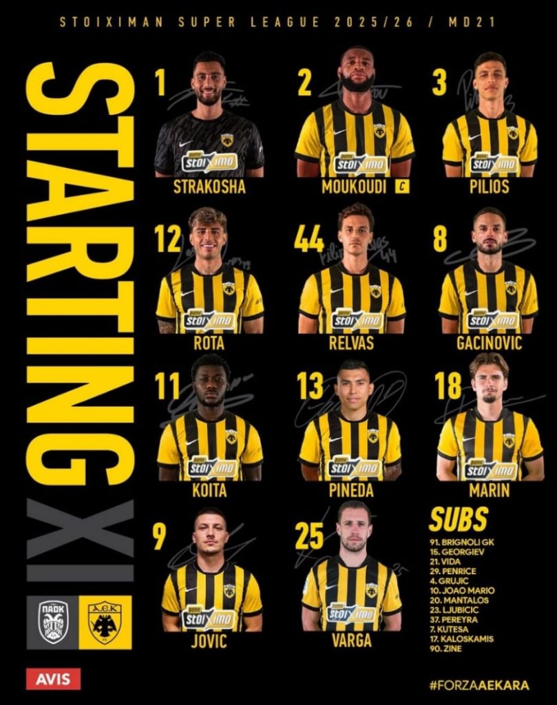 Με Γιόβιτς-Βάργκα: Η 11αδα της ΑΕΚ με ΠΑΟΚ