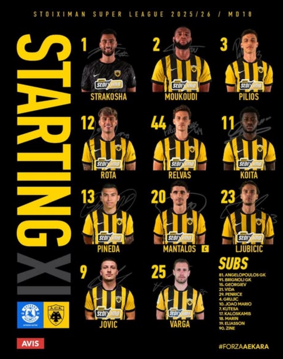 Η 11αδα της ΑΕΚ με Astera AKTOR