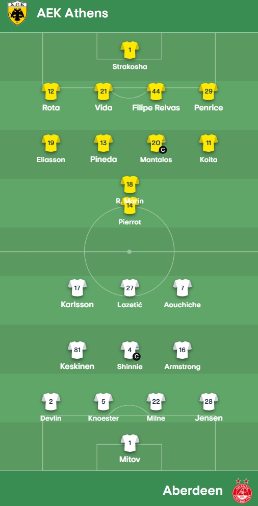 Με Πιερό βασικό: Η 11αδα της ΑΕΚ με Αμπερντίν – Οι αλλαγές του Νίκολιτς