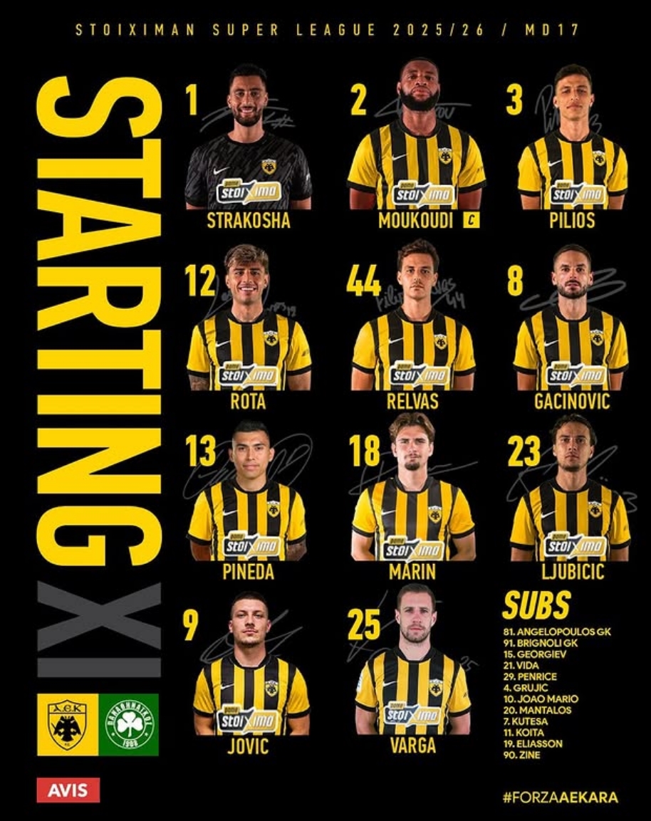 Με Βάργκα-Γιόβιτς: Η 11αδα της ΑΕΚ με Παναθηναϊκό