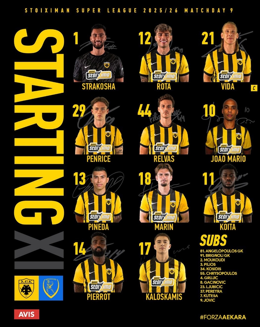 Με βασικό Καλοσκάμη: Η 11αδα της ΑΕΚ με Παναιτωλικό
