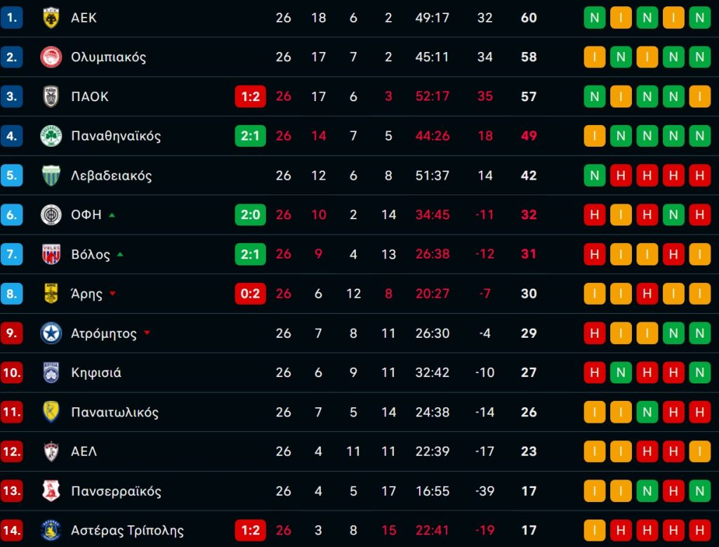 Μόνη πρώτη η ΑΕΚάρα: Η τελική βαθμολογία στη κανονική διάρκεια Superleague μετά τις γκέλες ΠΑΟΚ - Ολυμπιακού