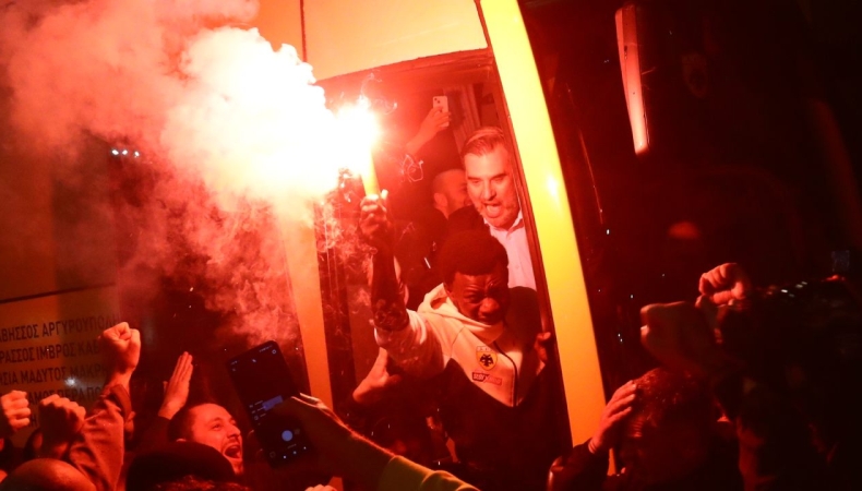 Φίλοι της ΑΕΚ έστησαν πάρτι από τη Συγγρού μέχρι τη Νέα Φιλαδέλφεια όπου έφτασε η αποστολή με… συνοδεία την «κιτρινόμαυρη» λαο-θάλασσα που ακολουθούσε με μηχανοκίνητη πορεία. Φυσικά ο σκόρερ του ματς δεν θα μπορούσε να μην είχε την τιμητική του.