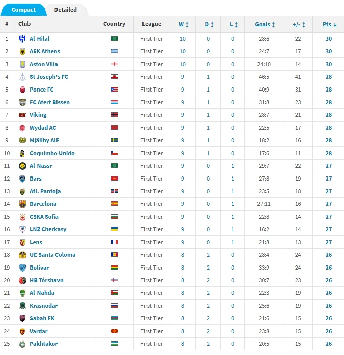 Το σύνολο του Μάρκο Νίκολιτς μετράει 10 νίκες σε 10 αγώνες, χωρίς καμία ισοπαλία ή ήττα, με απολογισμό τερμάτων 24 υπέρ και μόλις 7 κατά, συγκεντρώνοντας 30 βαθμούς. Μια επίδοση που την τοποθετεί στο απόλυτο elite της παγκόσμιας φόρμας αυτή τη χρονική περίοδο. Μοναδική ομάδα που την ξεπερνά είναι η Αλ Χιλάλ, με ίδιο αριθμό νικών αλλά καλύτερη διαφορά τερμάτων.