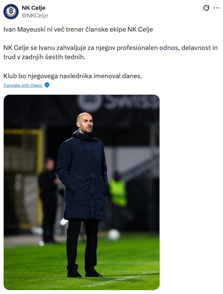 Οι Σλοβένοι ανακοίνωσαν το πρωί της Παρασκευής το τέλος της συνεργασίας με τον Ιβάν Μαέφσκι.