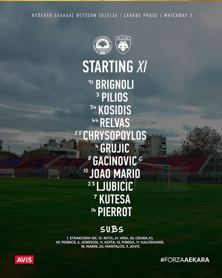 Στον πάγκο ο Καλοσκάμης: Έκπληξη Νίκολιτς με νεαρό άσο, η 11αδα της ΑΕΚ με Ηλιούπολη