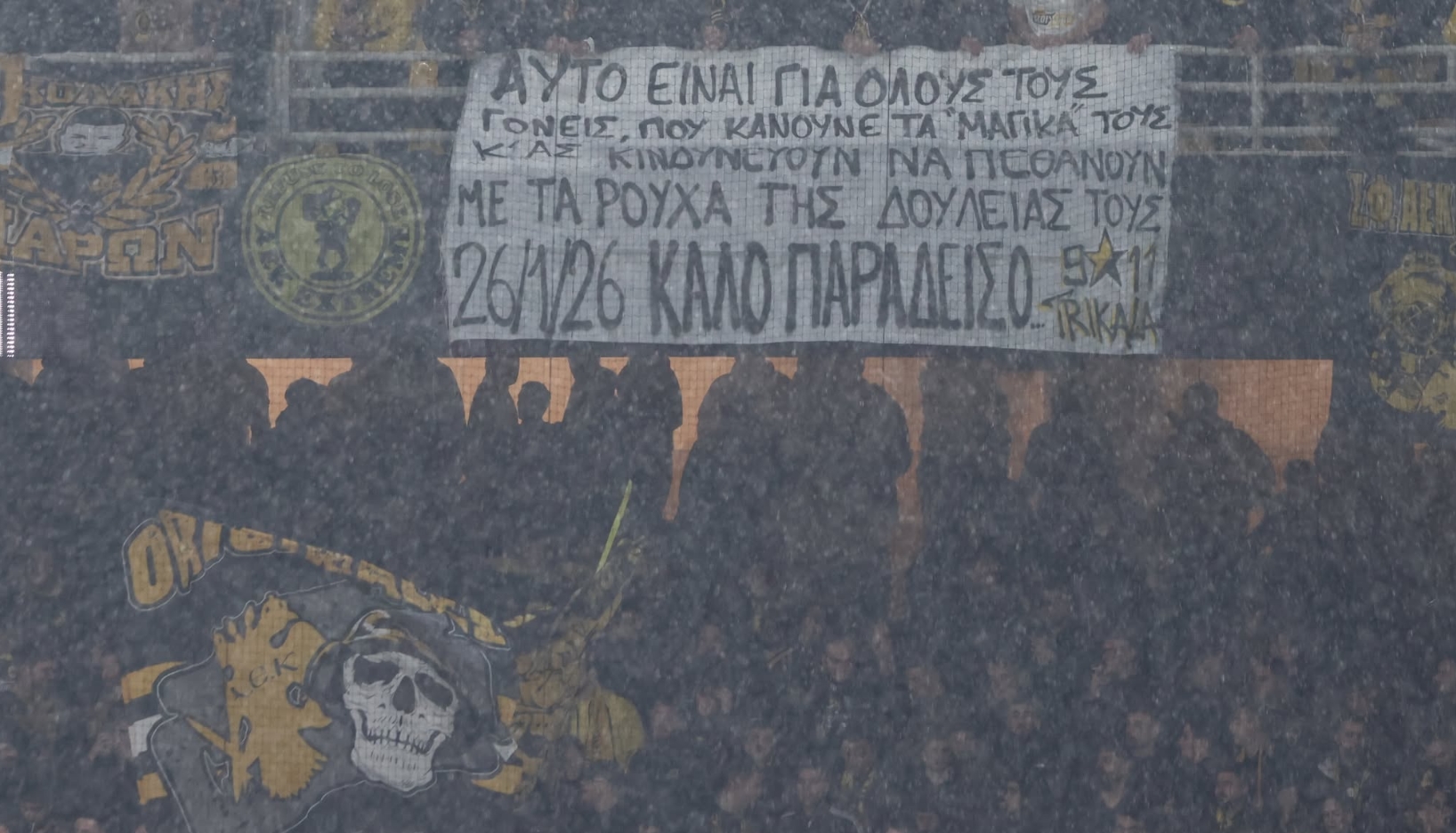 Συγκλονιστικό και συγκινητικό πανό στο ΑΕΚ-Ολυμπιακός για τις 5 γυναίκες στο εργοστάσιο Βιολάντα