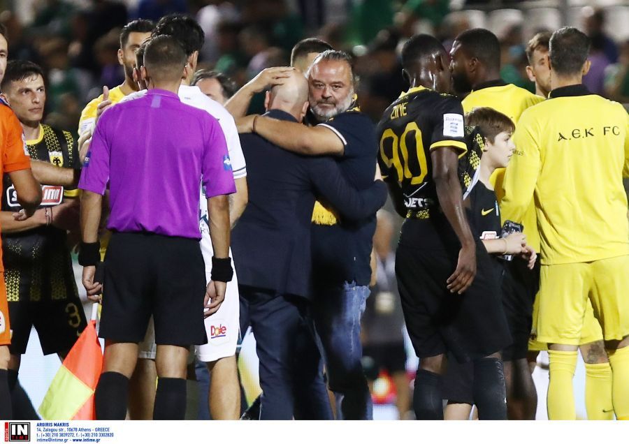 Αμέσως μετά το τέλος του αγώνα στη Λειβαδιά, ο ισχυρός άνδρας της ΑΕΚ, Μάριος Ηλιόπουλος, μπήκε στον αγωνιστικό χώρο για να συγχαρεί τον Μάρκο Νίκολιτς και τους παίκτες του για τη νίκη της «Ένωσης».