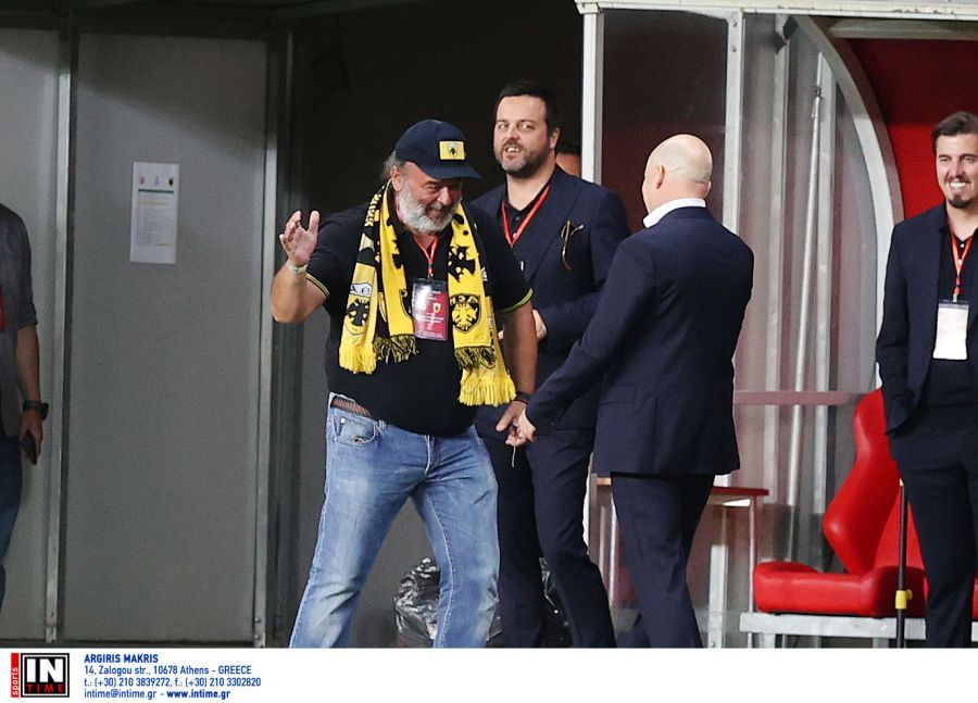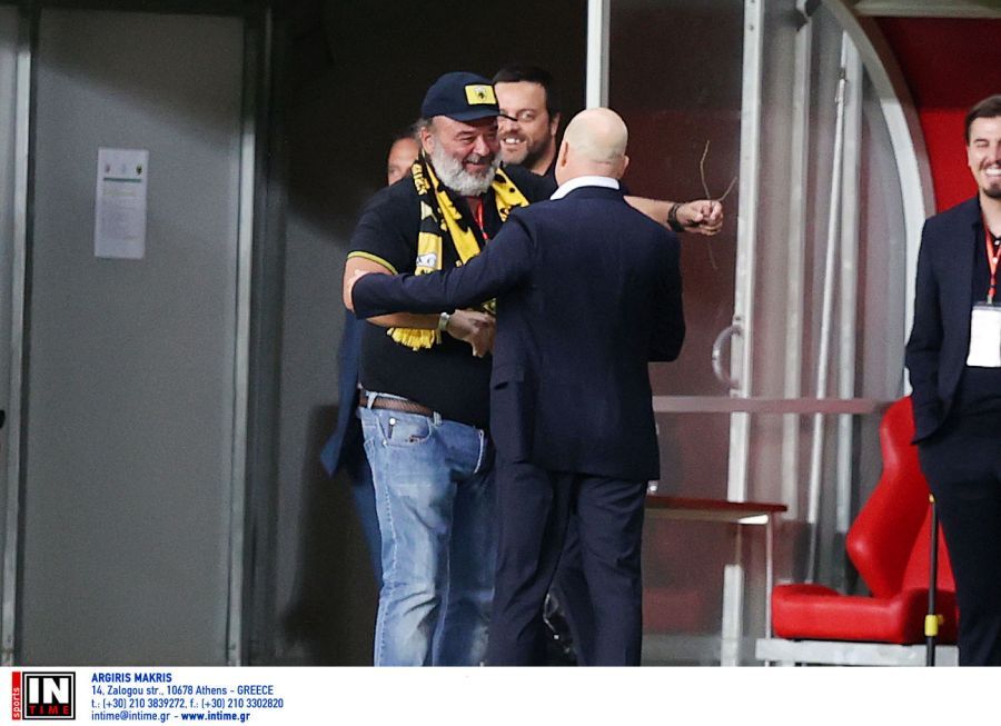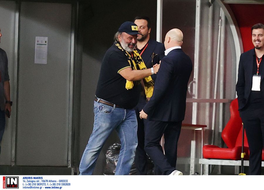 Την ίδια ώρα, στις άκρες του γηπέδου, ο Μάριος Ηλιόπουλος είχε σύντομη συνομιλία με τον Μάρκο Νίκολιτς.